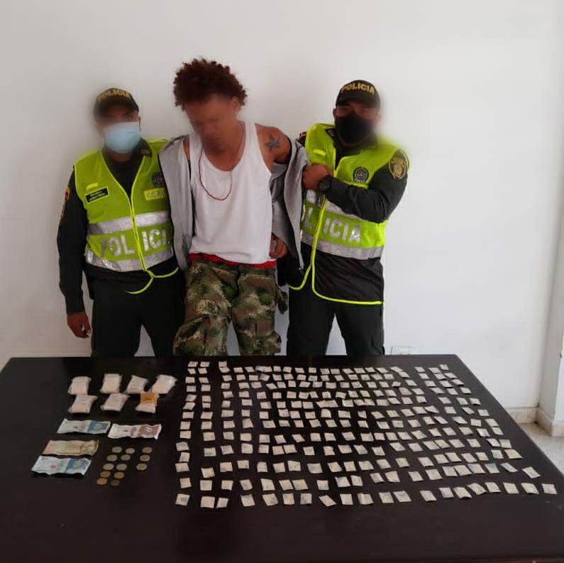Pradera, Valle del Cauca . – El Departamento de Policía Valle, en el marco de la estrategia que se encuentra desplegada en todo el país, “PLAN 100 CONTRA EL MICROTRAFICO”, que articula todas las capacidades interinstitucionales contra el tráfico de estupefacientes en menores cantidades, integrantes del modelo nacional de vigilancia comunitaria por cuadrantes de estación pradera, en el barrio villamarina logra captura en flagrancia de un hombre de 27 años de edad, a quien se le encontró en su poder 1200 papeletas de bazuco listo para su distribución y venta. Capturado y sustancia son dejados a disposición de la autoridad competente.
