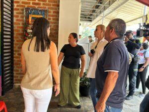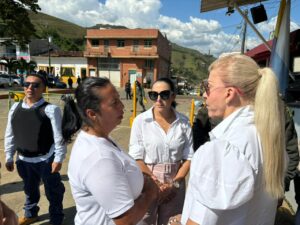 Durante su recorrido por las zonas afectadas en Riofrío la Gobernadora destacó la acción heróica de un intendente que evacuó a estudiantes de una escuela y evitó la detonación de una motocicleta bomba frente a la puerta del colegio en la cabecera de Riofrío.
